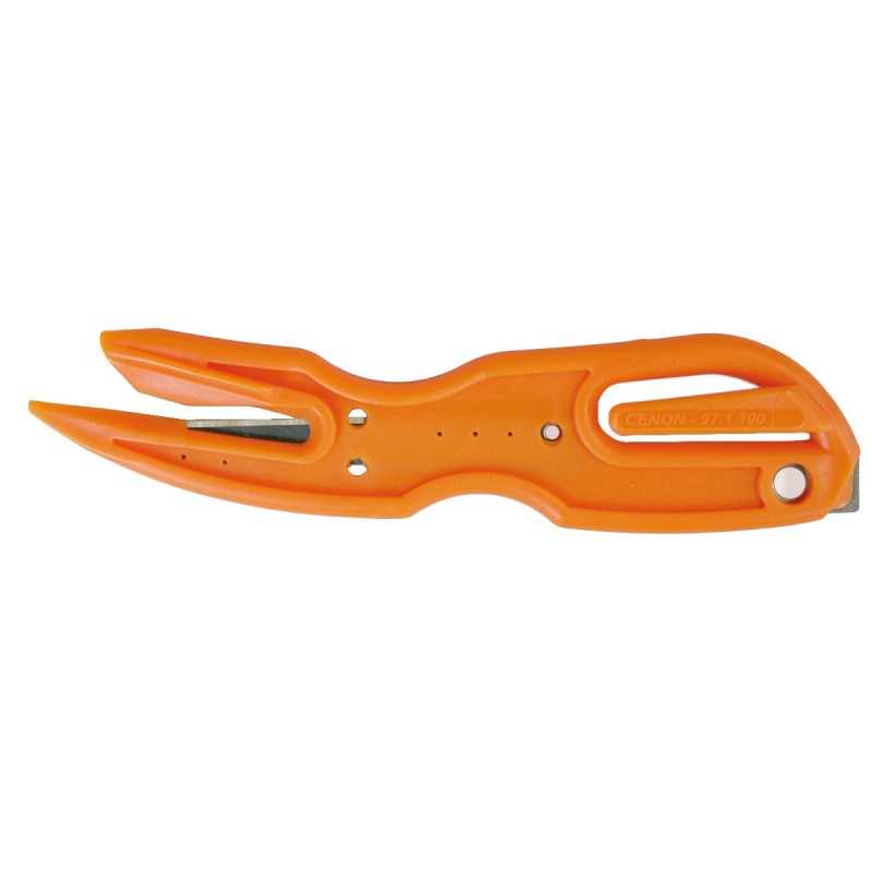 Cutter de seguridad desechable. Diseñado bajo tres criterios: seguridad, ergonomía y comodidad para el uso diario. Para cortar flejes y film. Hoja inox.