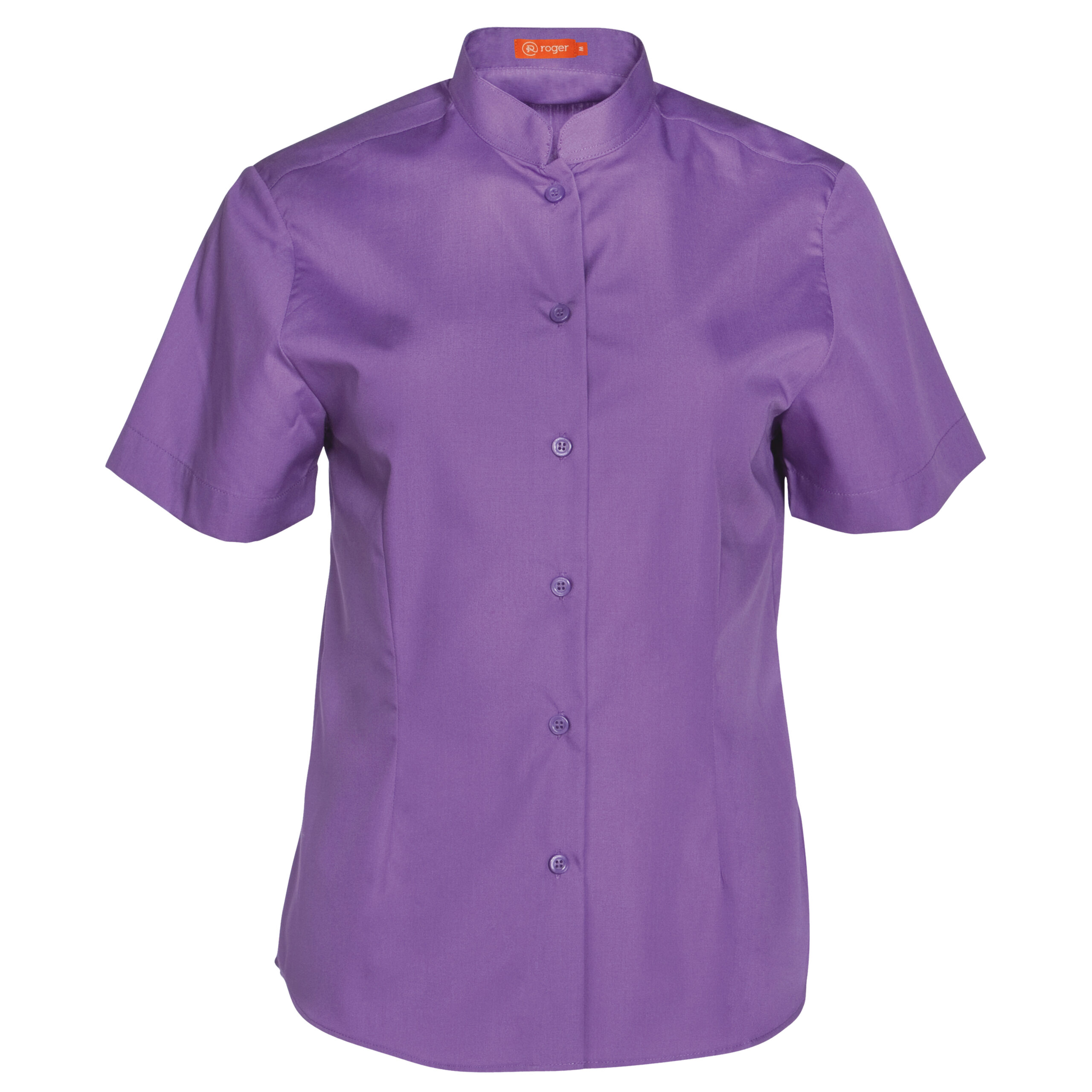 Camisa de mujer con manga corta y cuello Mao en corte Slim Fit, ideal para un look fresco y moderno.