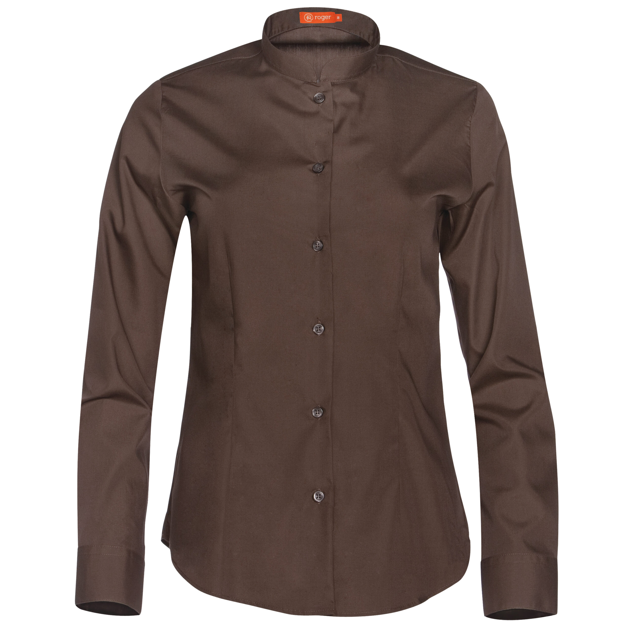 Camisa de mujer de manga larga con cuello Mao y corte Slim Fit, ideal para un look elegante y contemporáneo.