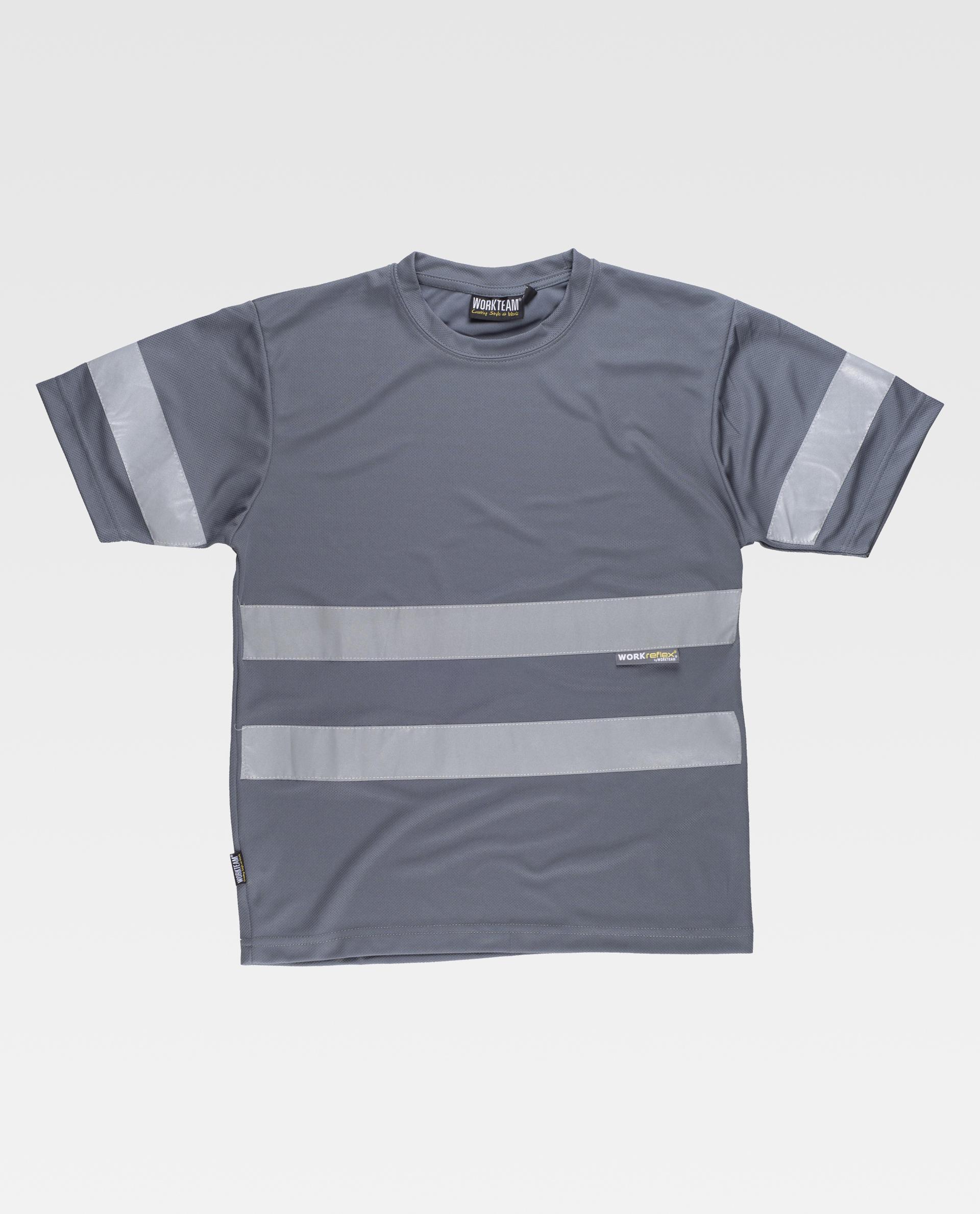 Camiseta de manga corta en poliéster ojo de perdiz con cintas reflectantes.