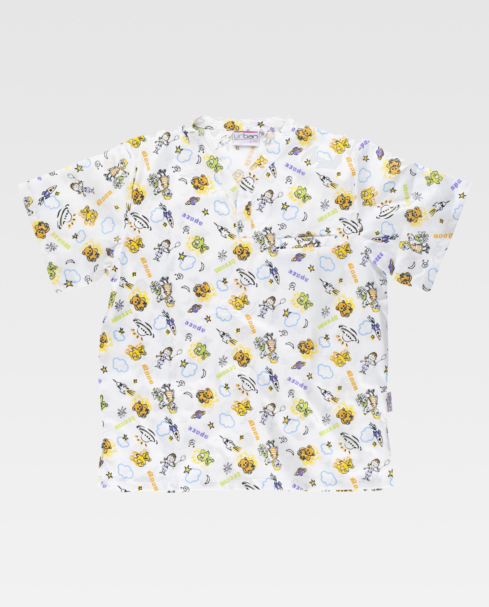 Casaca unisex de manga corta estampada con motivos infantiles y acabado antimanchas.