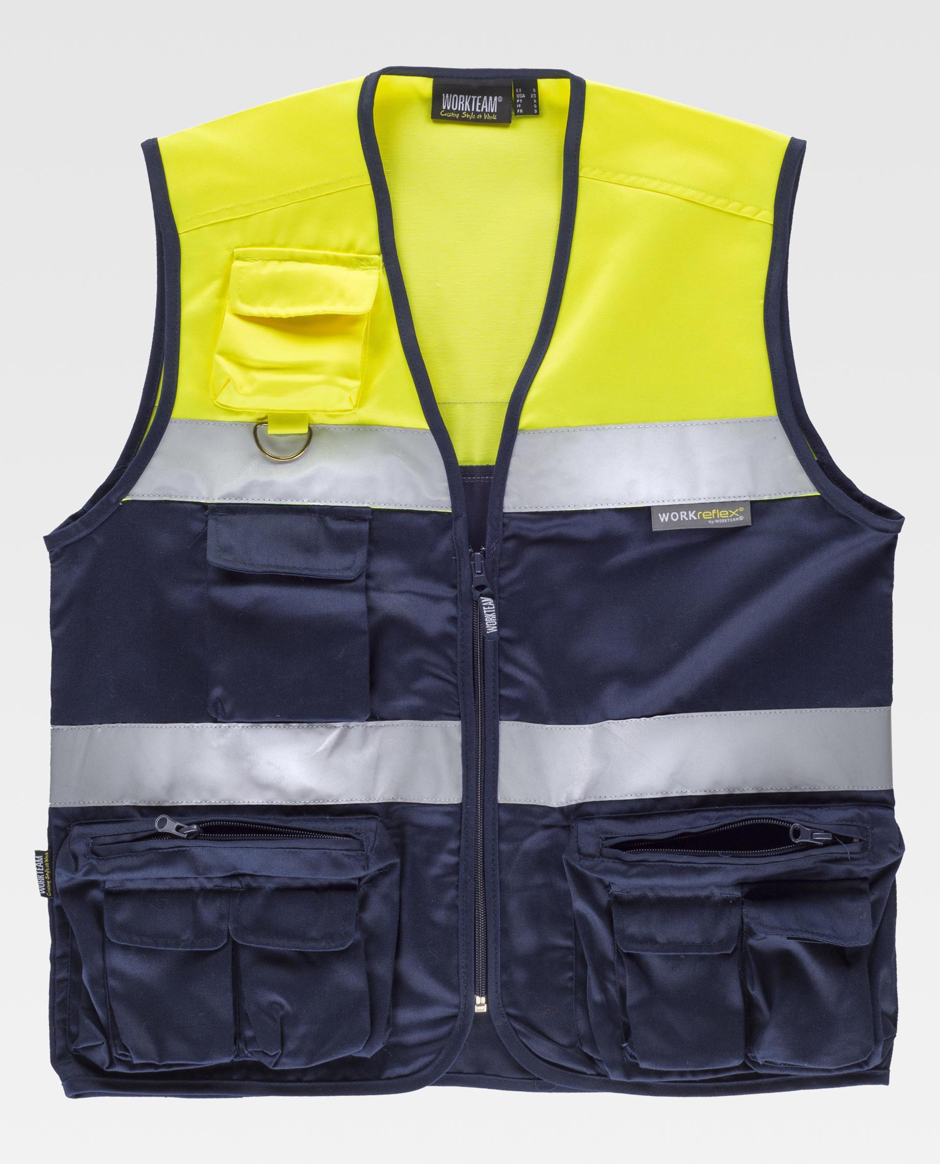 Chaleco tipo safari combinado con cintas reflectantes.