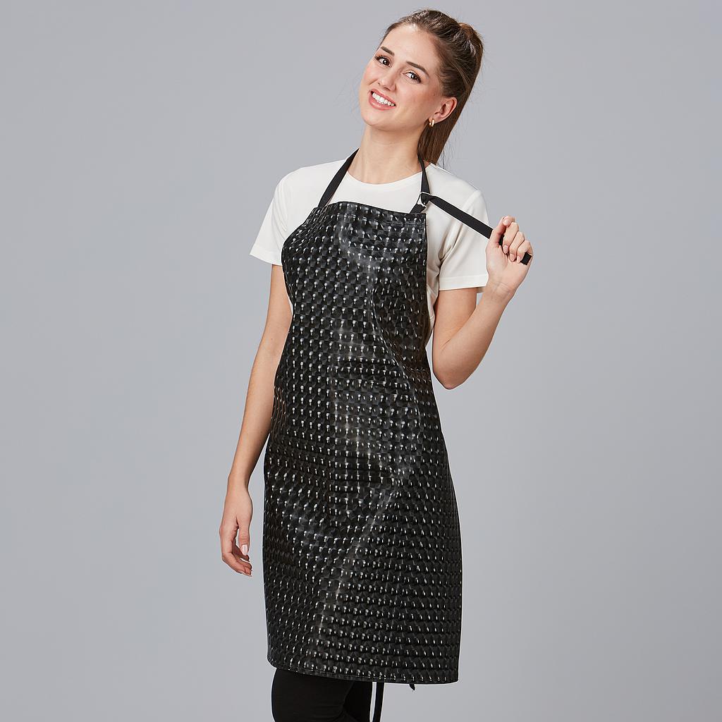 Lo que realmente hace especial a nuestro delantal antimanchas es su símil polipiel con efecto metalizado, que no solo añade un toque de sofisticación a tu uniforme, sino que también facilita su limpieza. Con la capacidad de eliminar manchas con un simple paño húmedo, este delantal es la elección ideal para mantener una imagen impecable en tu entorno de trabajo.