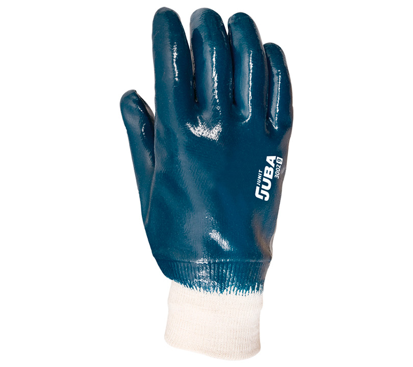 GUANTE NITRILO ESTANCO PESADO S/SOPORTE DE ALGODÓN JERSEY, DORSO CUBIERTO, CON PUÑO, AZUL (COD.:30