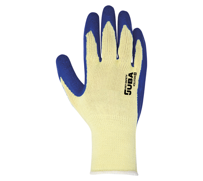 GUANTE POLIÉSTER SIN COSTURAS RECUBIERTO LÁTEX RUGOSO, AMARILLO/AZUL (COD.:KSLX100)