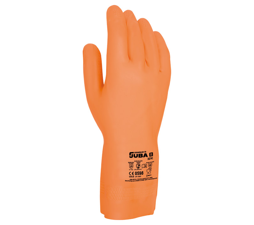 GUANTE SIN SOPORTE LÁTEX/NEOPRENO FLOCADO LIGERO, NARANJA. (COD.:321C)