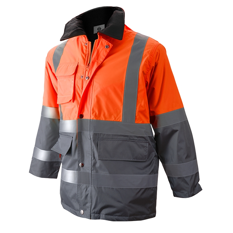 2 bandas reflectantes continuas en cuerpo y mangas.
