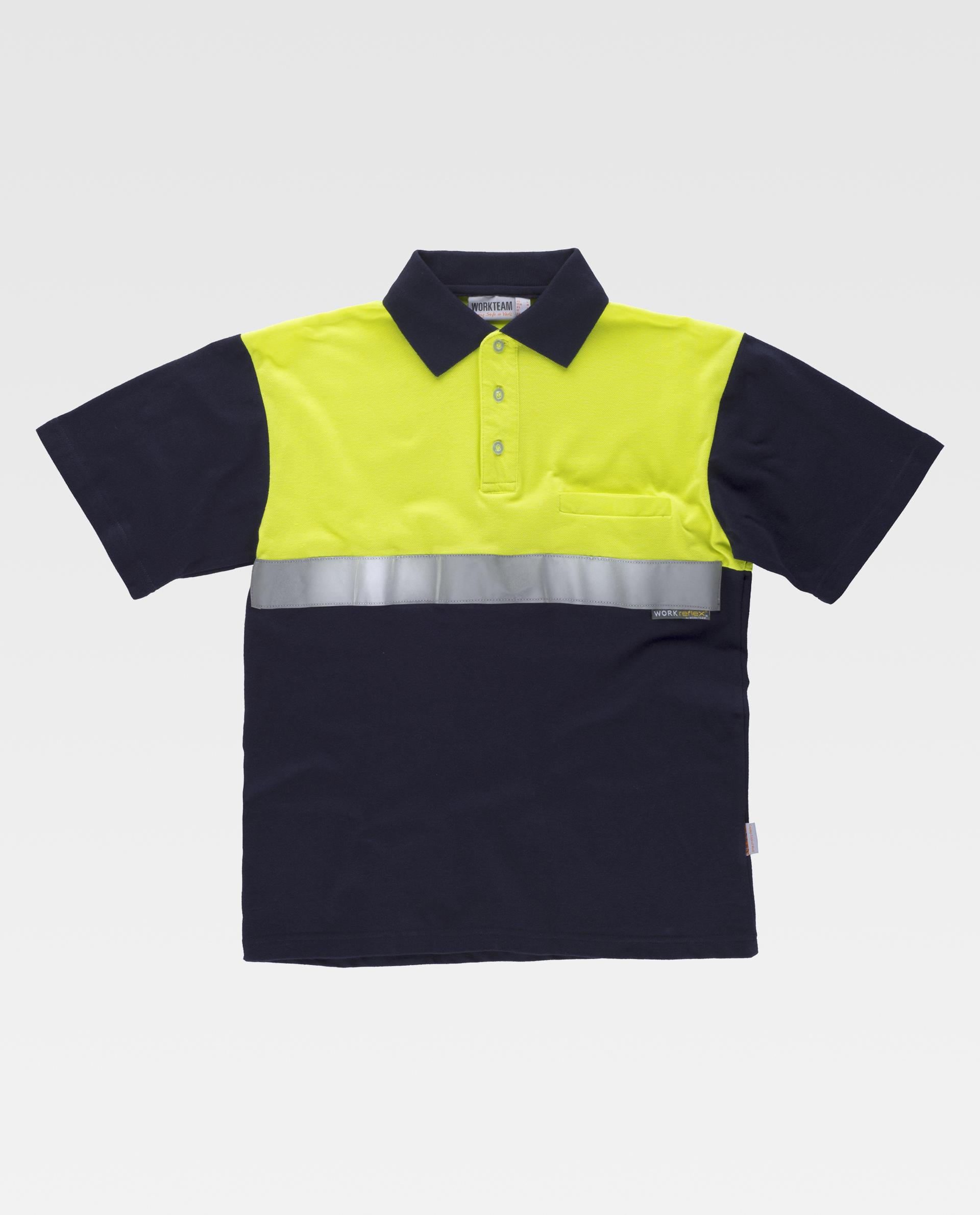 Polo combinado de manga corta en piqué de algodón con cinta reflectante.