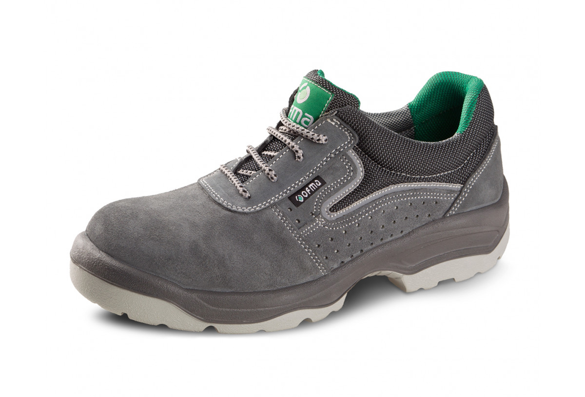 Corte piel afelpada con laterales perforados.Alto nivel de antideslizamiento SR. Plantilla OFMA W antibacteriana termoconformada.Protección: S1+PS+FO+CI+SR.